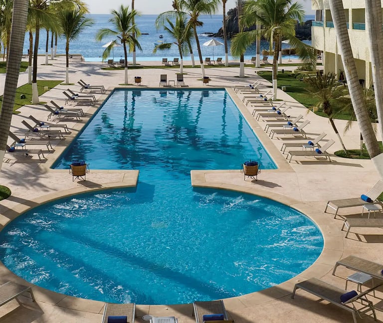 Resort todo incluido con spa, albercas y experiencias gastronómicas. Excelente para descanso total en Huatulco.